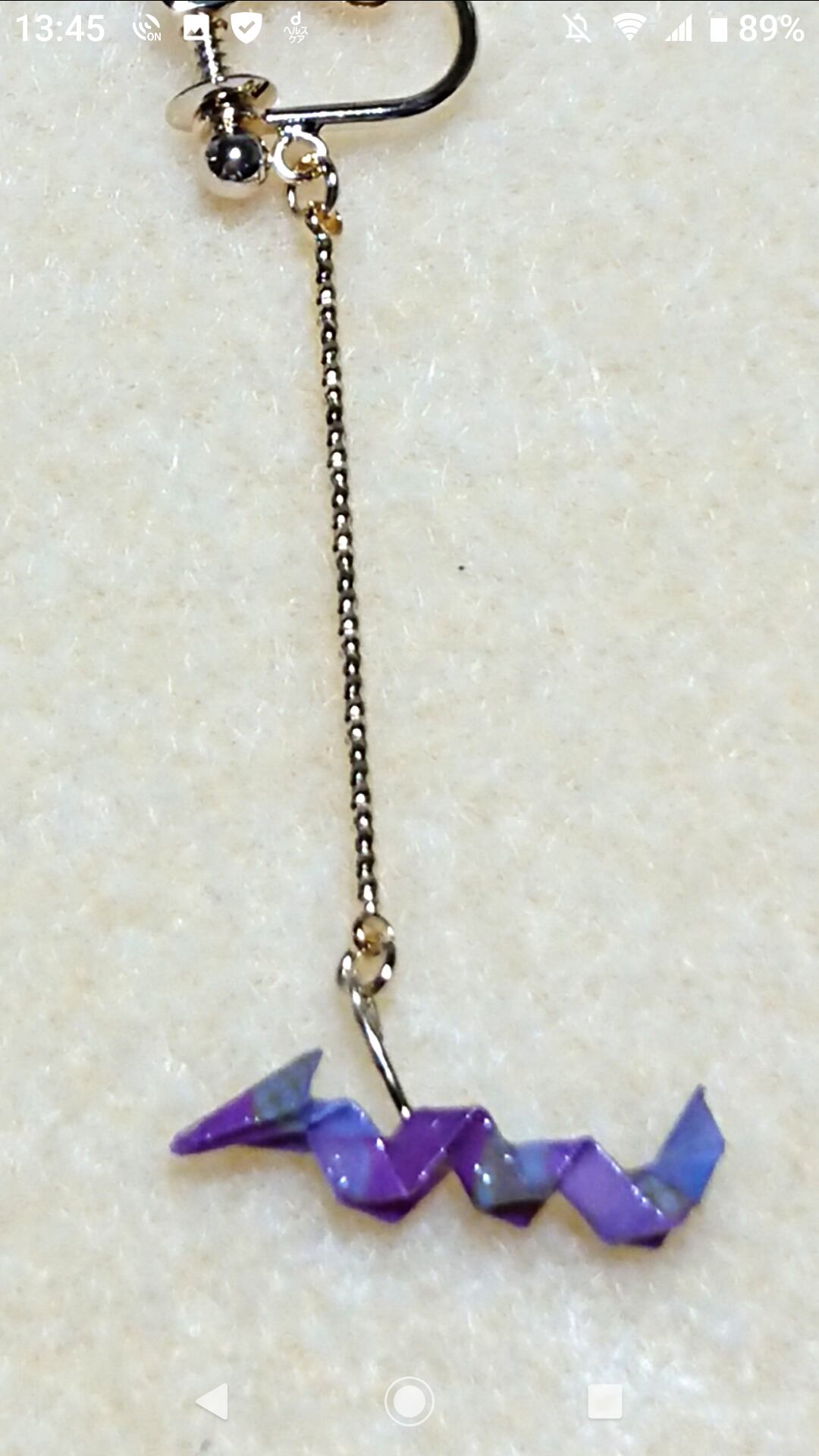 折り紙で折ったミニミニ龍のイヤリングです。