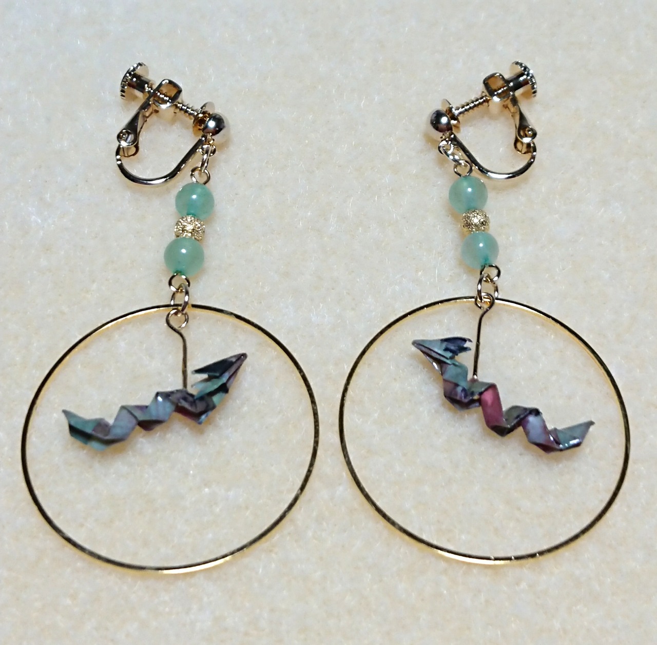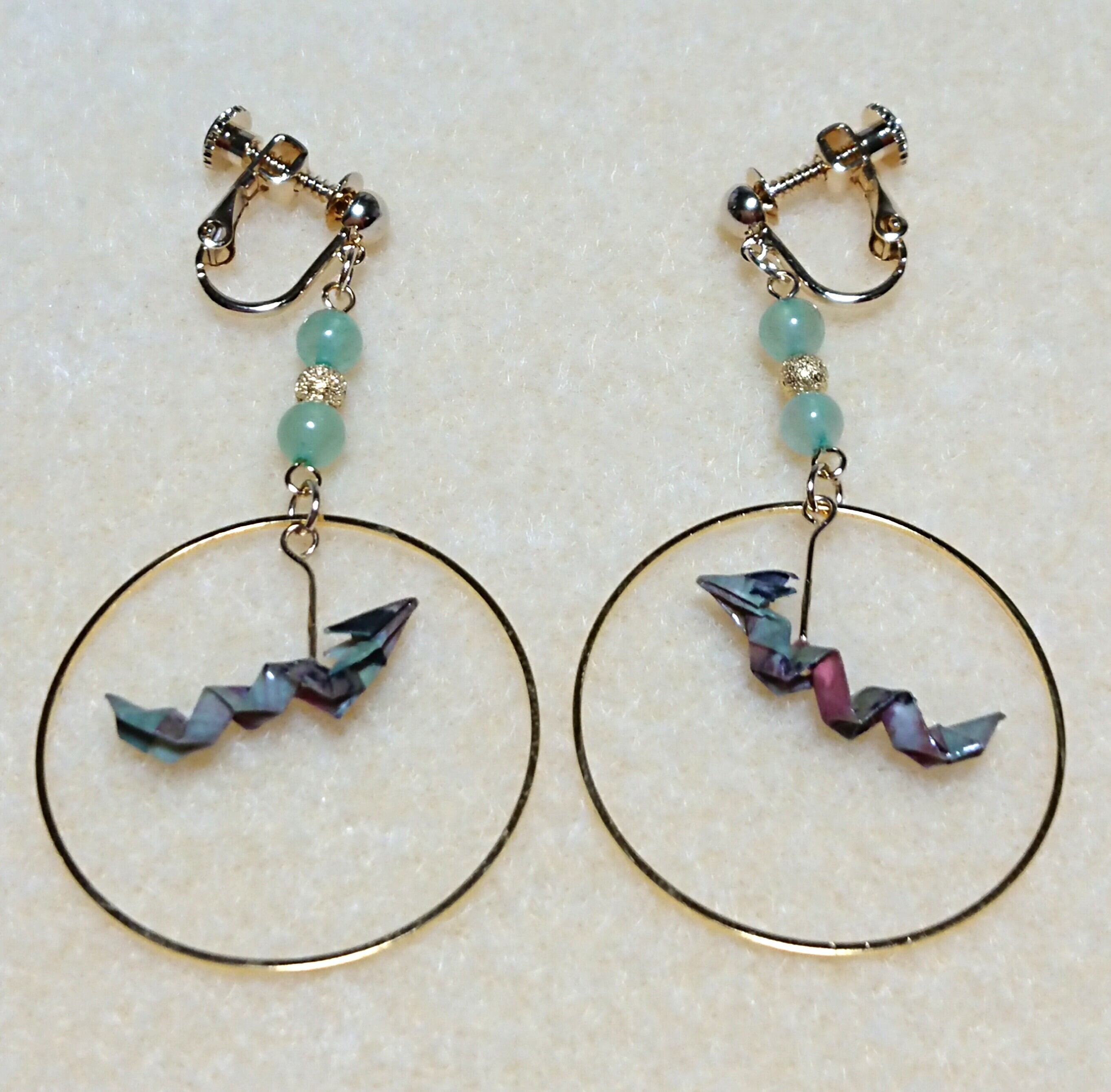 折鶴などのイヤリングはよく見かけますが